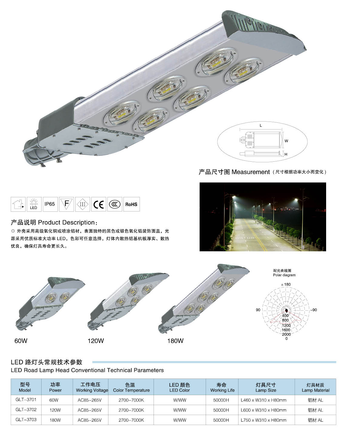 燈具參數(shù):60W、120W、180W